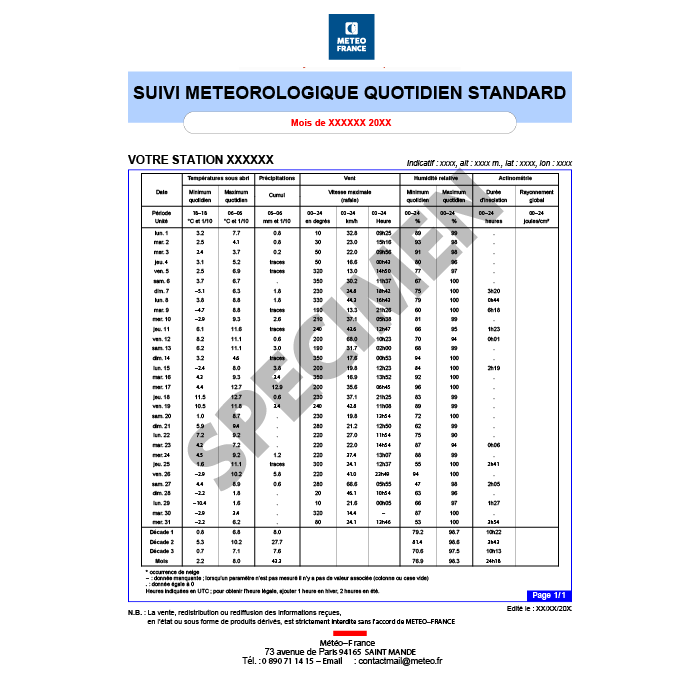 Suite à l'ouverture de ses données publiques, Météo-France ne commercialise plus le Suivi Météorologique Quotidien Standard.