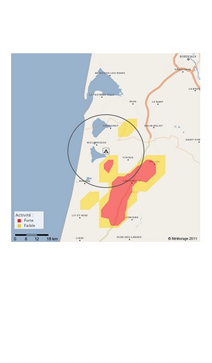 - Météorage vous envoie un message d’avertissement par SMS et email, lorsqu’une activité foudre est détectée autour de votre établissement, vous permettant de disposer d’un préavis suffisant pour prendre toutes les mesures conservatoires. Le message contient une information visuelle sur le déplacement de l’orage, consultable pendant tout le temps de l’alerte, vous permettant d’estimer l’ampleur et la direction du phénomène. Dès que l'alerte est levée, vous recevez un message de retour à la normale pour reprendre votre activité.