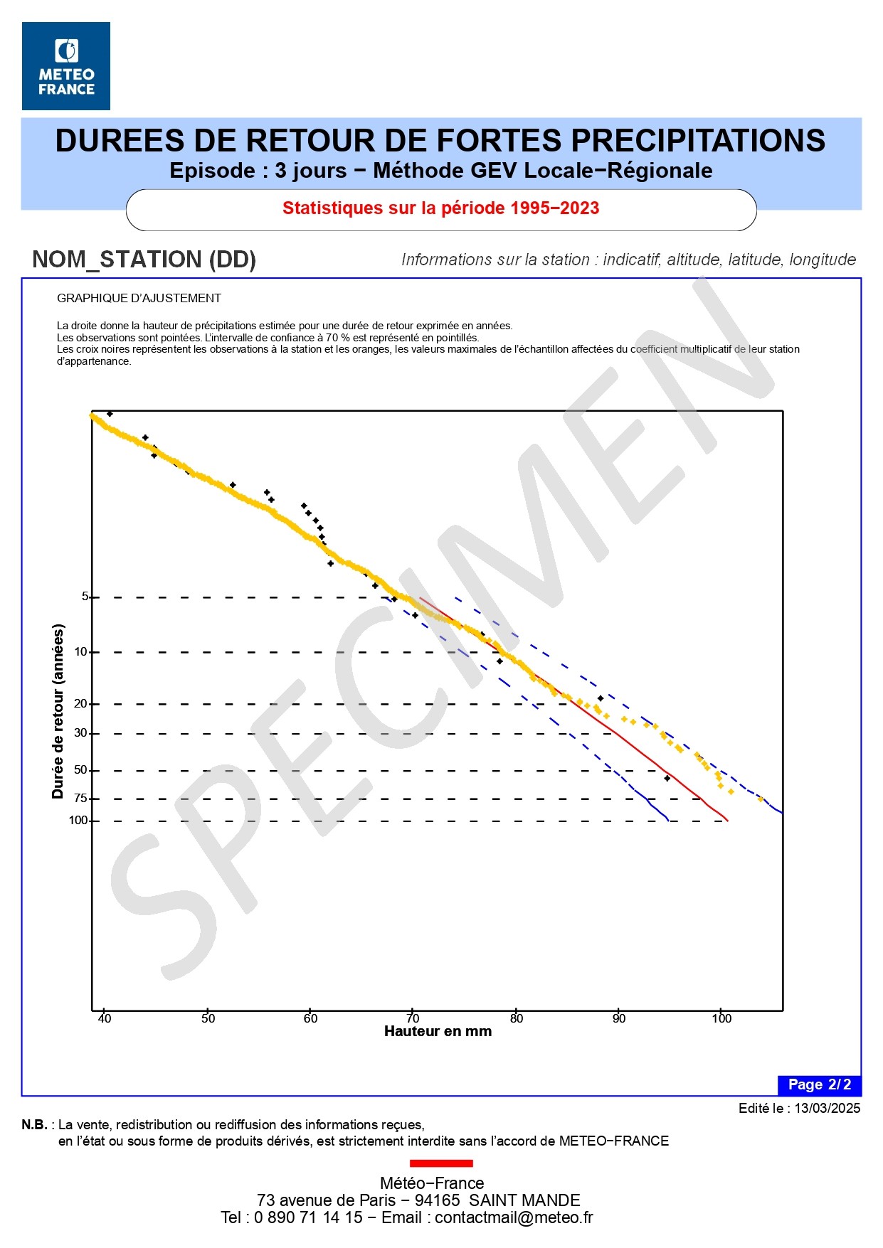 - Les Durées de Retour de Précipitations pour les pas de temps journaliers sont élaborées à partir de données mesurées par le réseau d’observations synoptiques et de postes climatologiques (station de mesure) de Météo-France et validées par le service de climatologie de Météo-France.